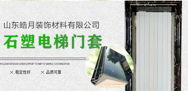 山東皓月裝飾材料有限公司是一家專做電梯門套的研發、生產、銷售、安裝為一體的企業。本公司生產的電梯門套具有:無污染、無輻射、防火、防水、易清潔、安裝快、省時、時尚美觀等特點。